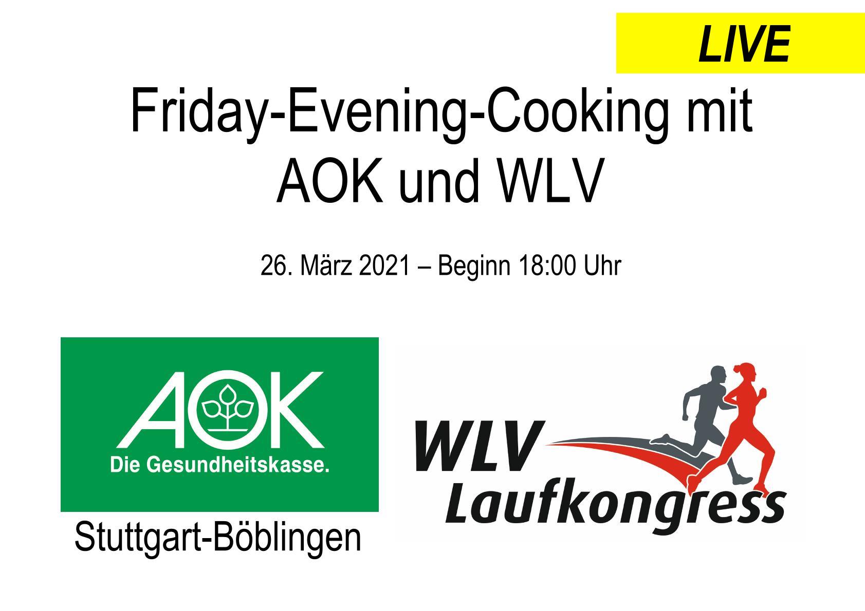 Am Freitag von 18:00 bis ca. 19:30 Uhr veranstaltet der Württembergische Leichtathletik-Verband (WLV), in Kooperation mit der AOK Stuttgart-Böblingen, den ersten virtuellen Kochabend, im Rahmen des 6. WLV Laufkongresses. Das Friday-Evening-Cooking mit Arne Gabius und Janina Brosche ist der Auftakt zum ersten digitalen WLV Laufkongress und wird live übertragen. Das heißt, Sie können von zuhause mitkochen! Es werden Pasta mit Kichererbsen, Champignons und Walnusstopping gekocht. Hier finden Sie das Rezept und die Einkaufs- und Utensiliensliste.